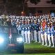 Setibanya di Akademi Militer, Presiden Prabowo disambut dengan penuh kehormatan. Ia melewati jajar kehormatan prajurit dan diiringi oleh penampilan marching band khas taruna Akademi Militer yang menambah suasana khidmat.
